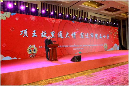 2024年2月4日,農(nóng)歷正月十五(元宵節(jié)),我院舉辦宿遷市建筑設(shè)計(jì)研究院五十周年慶典活動(dòng)。湖濱新區(qū)黨工委副書記、管委會(huì)主任陳磊出席活動(dòng)并致辭,活動(dòng)由我院董事長(zhǎng)兼院長(zhǎng)胡立軍主持。
